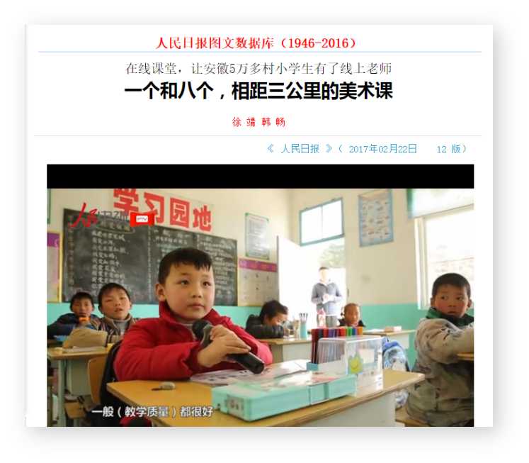 2017年2月,《人民日报》报道了当地“在线课堂”项目,大力肯定该项目对推动山区基础教育的作用