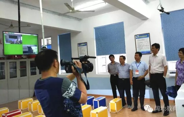 为促进教育均衡发展,该区在全市率先使用“直录播课堂”,图为领导现场参观阔地常态化互动课堂